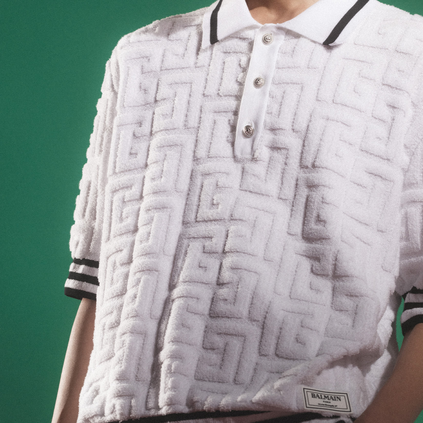 ee Balmain Riietus mehed puuvillane püramiidmonogrammiga polosärk must LJ8002923